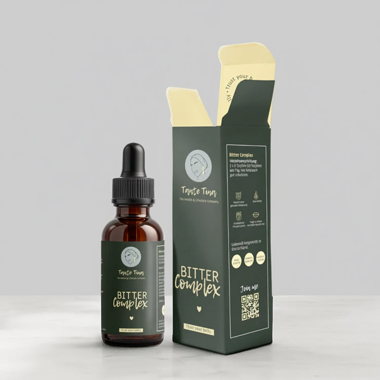 Mit Tante Tinas Bitter Complex förderst du sanft eine gesunde Verdauung. Hergestellt in Deutschland, garantiert es höchste Qualität und Reinheit.