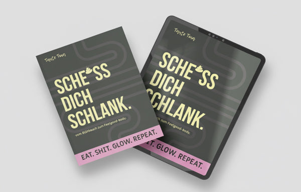 Und das Beste: On top bekommst du unser exklusives E-Book im Wert von 39,90€„SCHE*SS DICH SCHLANK - Vom Blähbauch zum Feeldgood-Body“ GRATIS.